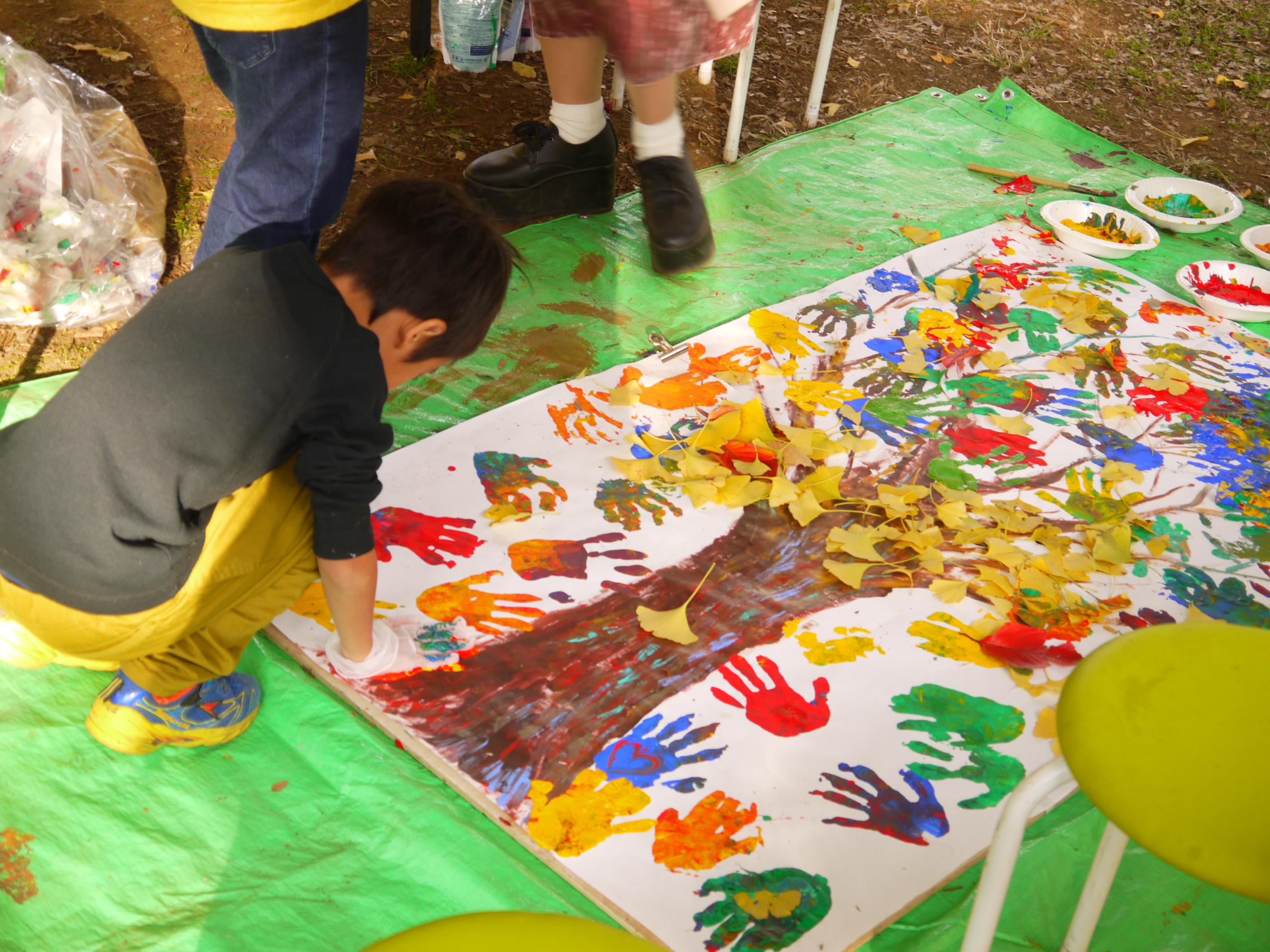 ピクニックタウンで行われたワークショップ「みんなで咲かせる!手形アートフラワー」の様子
